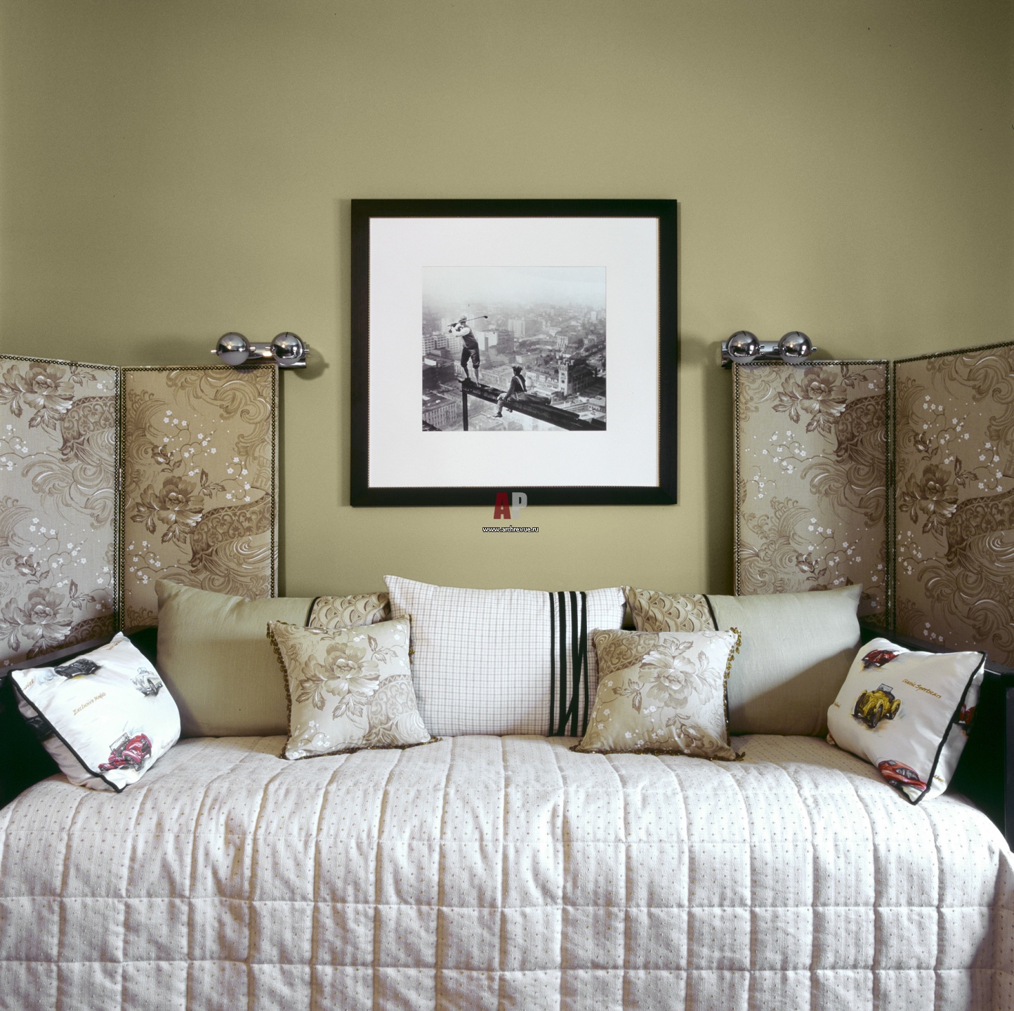 Две детские комнаты (для мальчика и девочки) почти идентичны. Одинаковые кровати, диваны, обтянутые тканью ширмы, располагающиеся за кроватями – все в них похоже, кроме цветовой гаммы.