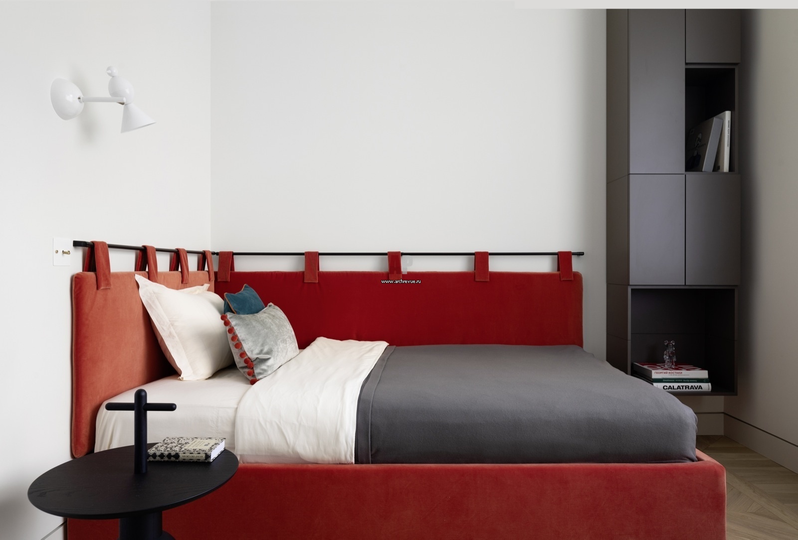 Детская с контрастным оформлением. Кровать сделана на заказ. Бра, Atelier Areti.