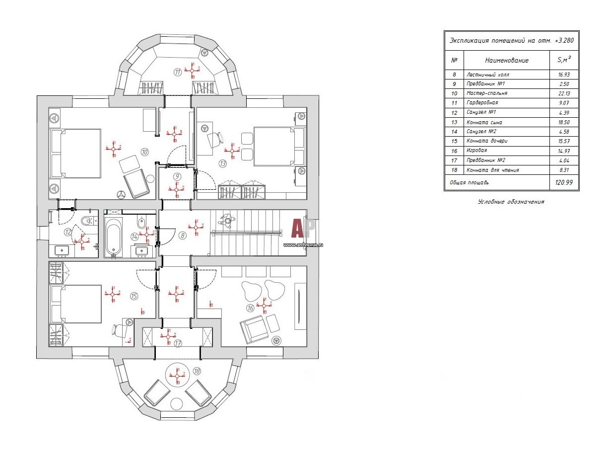 Планировка 2 этажа 3-х этажного дома для большой семьи в Подмосковье.