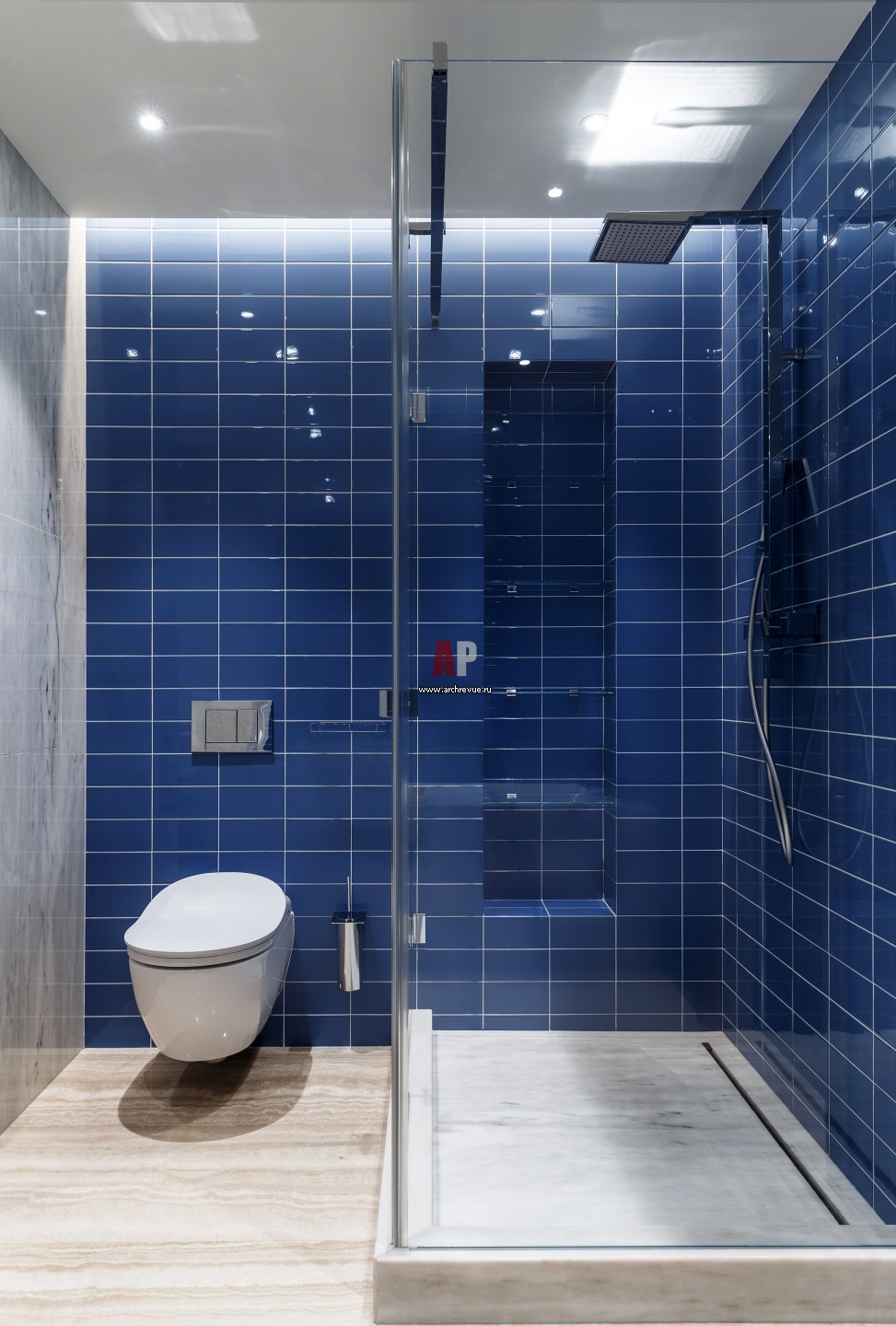 Детская ванная комната в синей цветовой гамме. Унитаз с «умной крышкой», Villeroy & Boch.