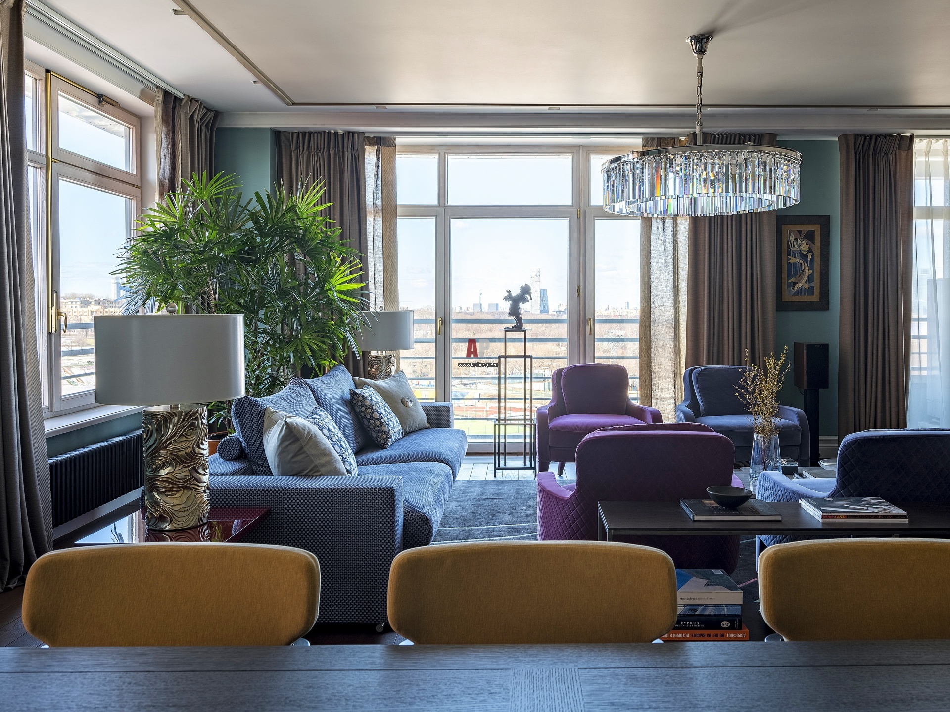 Хороший вид из окна и обилие света дизайнеры подчеркнули планировкой, зонированием и декоративным наполнением интерьера.
