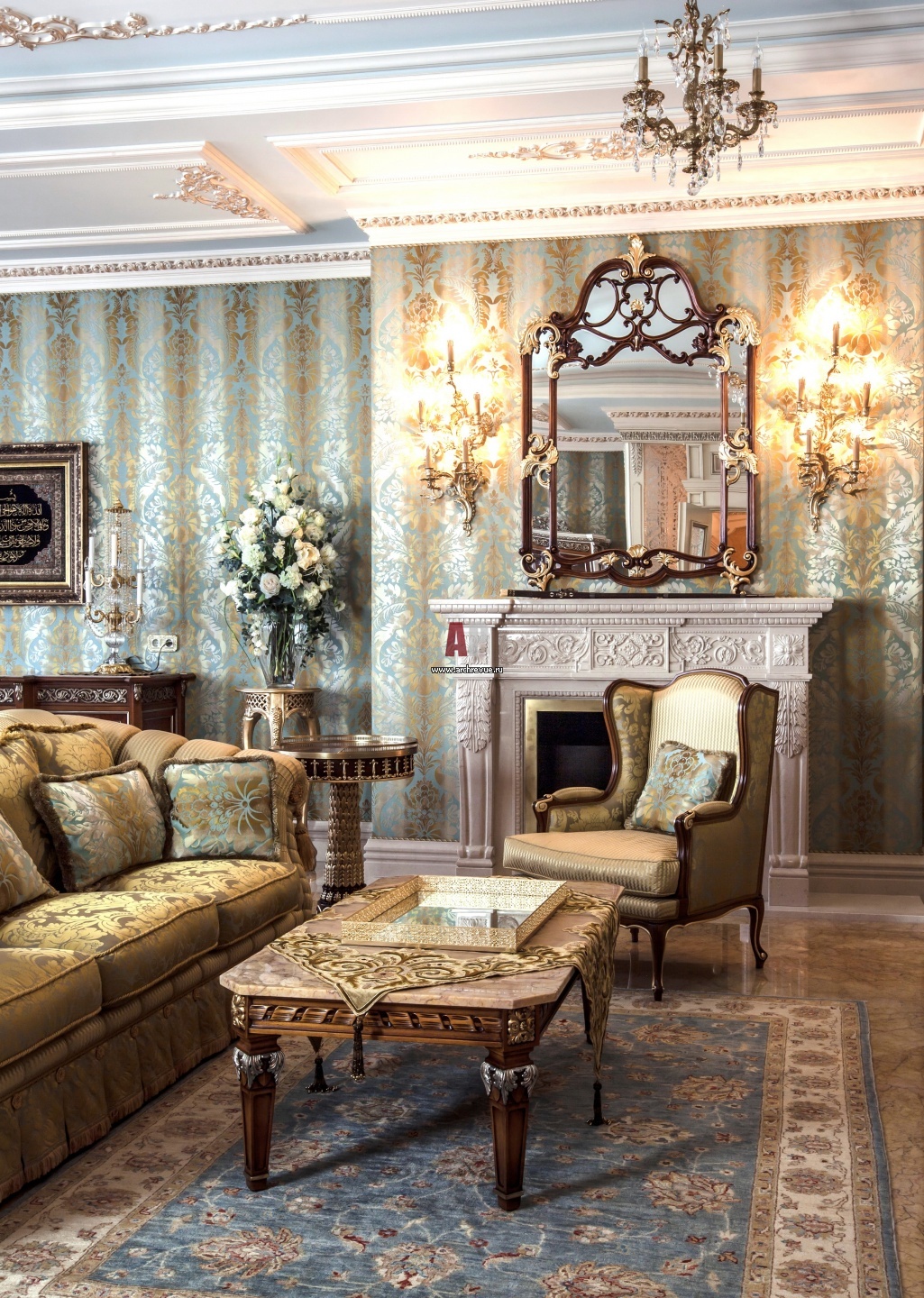 Интерьер каминной группы в парадной гостиной. Классический портал камина из мрамора сделан итальянским мастером.