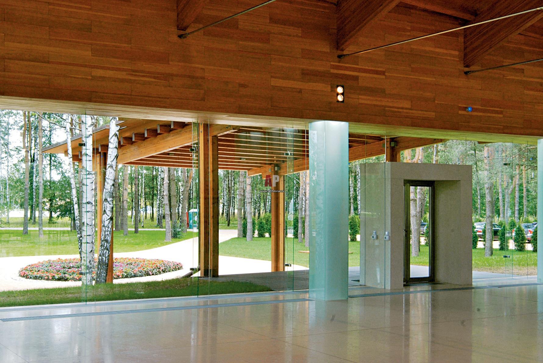 В вечернее время строение превращается в светящийся дом, парящий в поле. Этому способствуют неоновые подсветки, которые вмонтированы в выстроенные по периметру здания вертикальные колонны, поставщик «Центр Светодизайна».