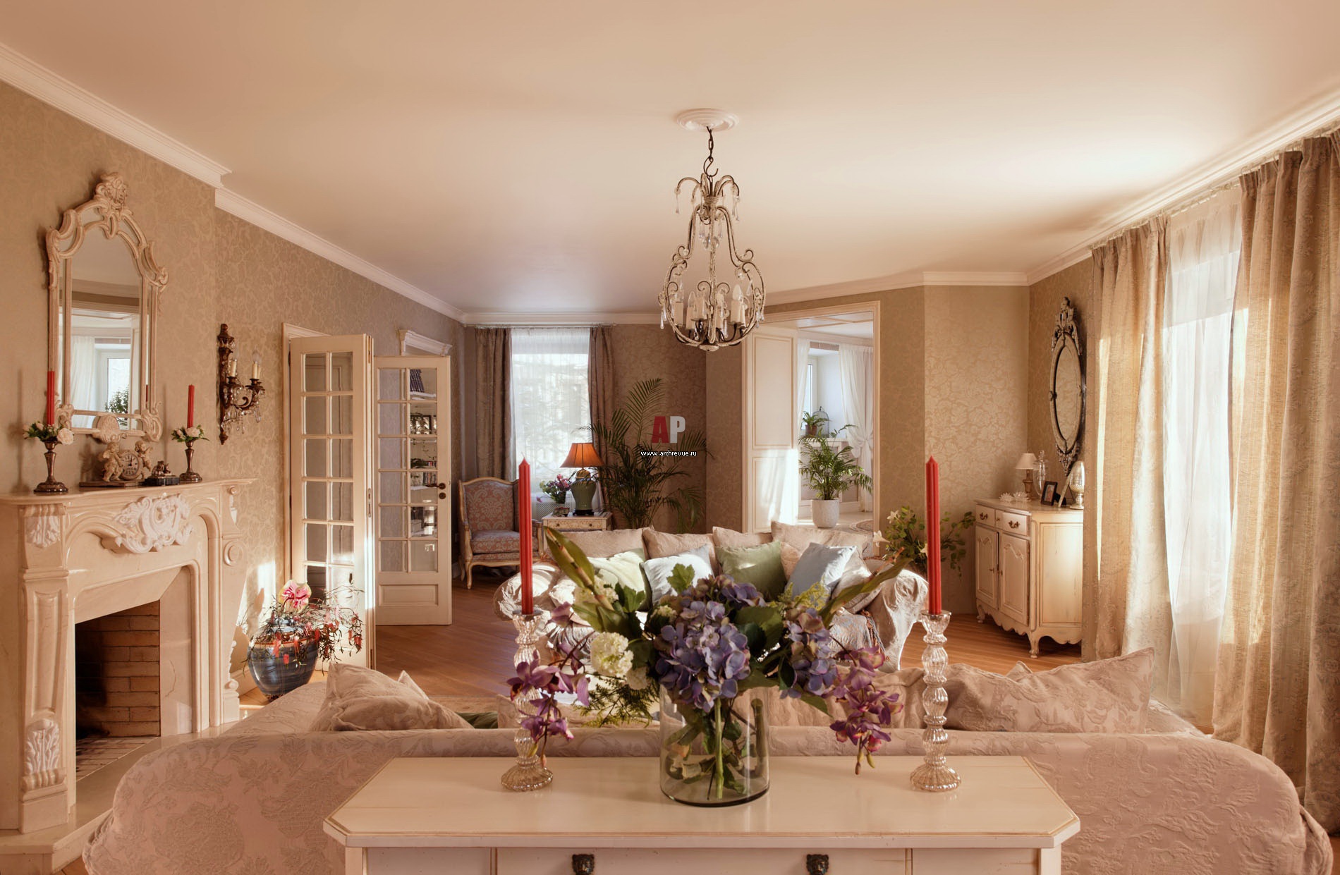 Фото интерьера каминной загородного дома в стиле фьюжн