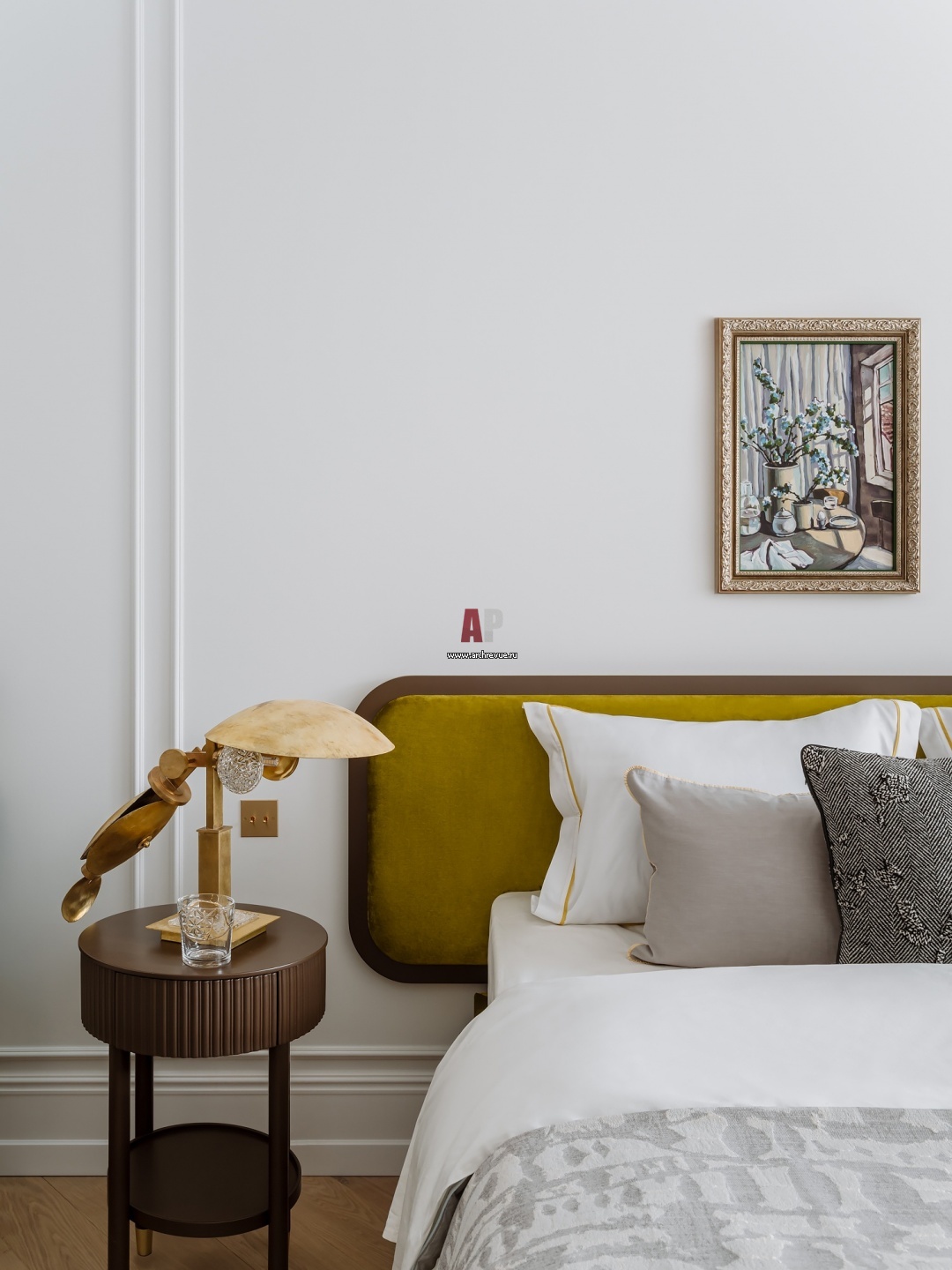 Квартира вне времени в дореволюционном доме. Интерьер главной спальни. Настольные лампы, Sigma L2.