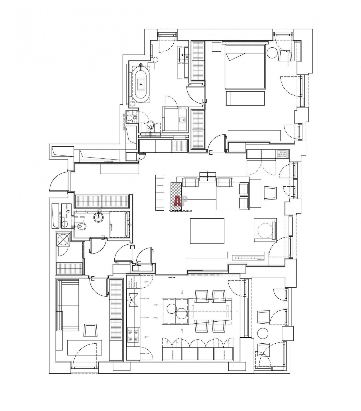План трехкомнатной квартиры площадью 140 кв. м в Хамовниках.