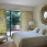 Фото интерьера спальни. Овальное зеркало, в раме из ракушек.