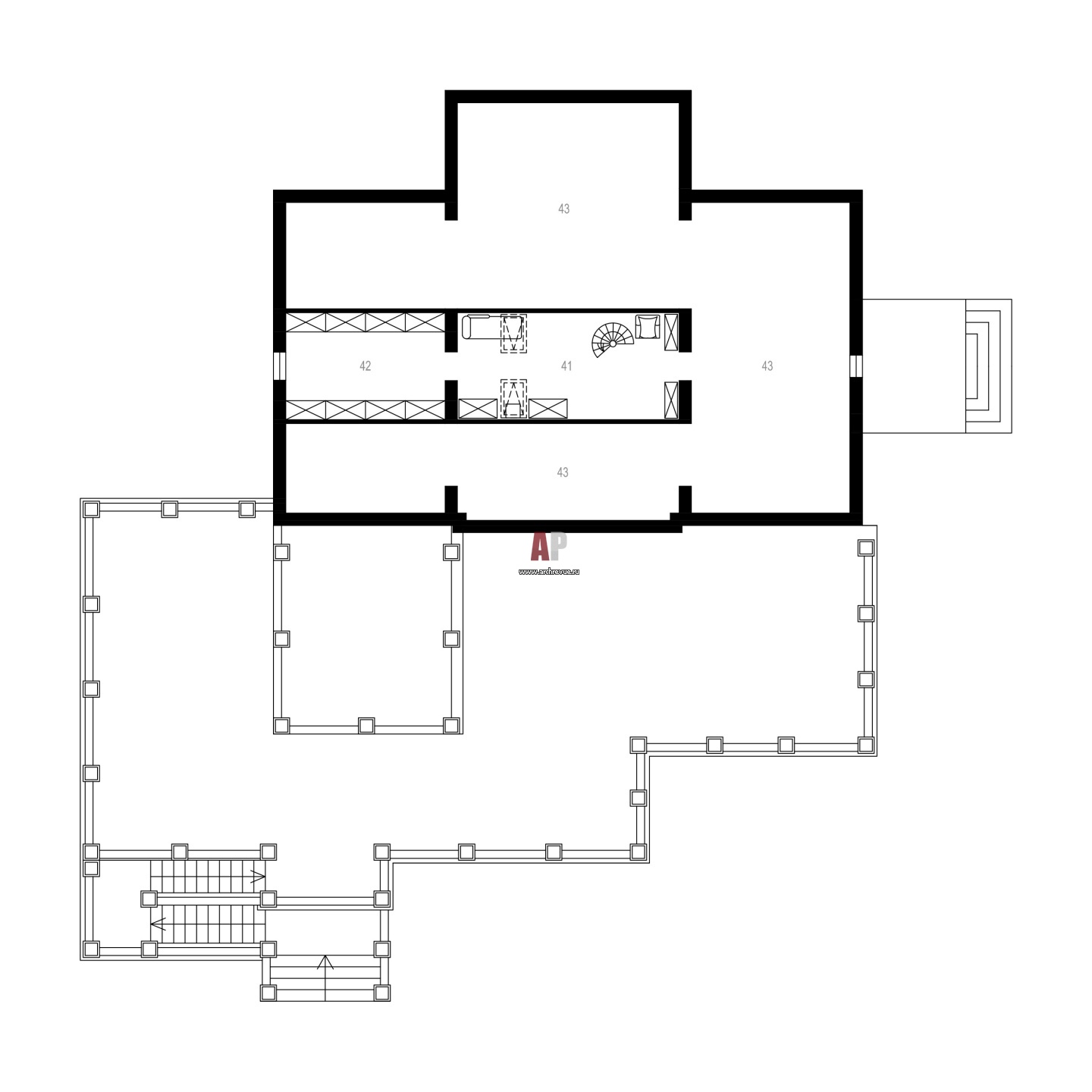 Планировка мансарды 4-х этажного особняка в классике.