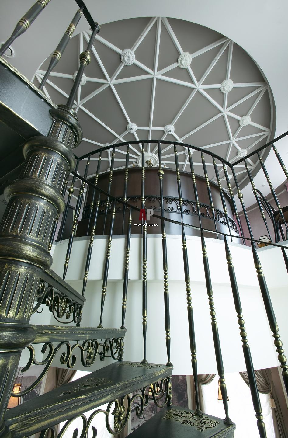 В глубине лобби-бара расположена «ностальгическая» винтовая кованая лестница, созданная мастерами компании «Кузница на Печатной».