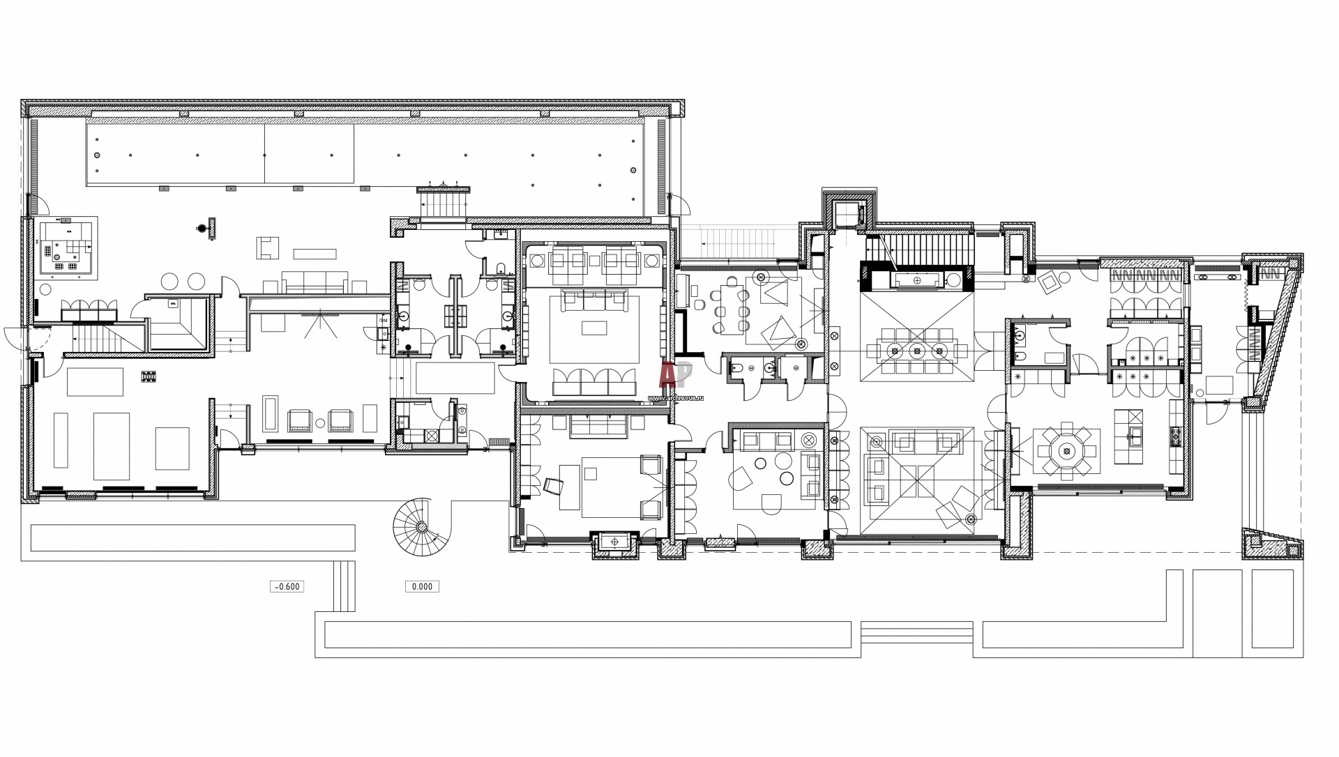 Планировка 1 этажа 2-х этажной семейной резиденции, 1900 кв. м.