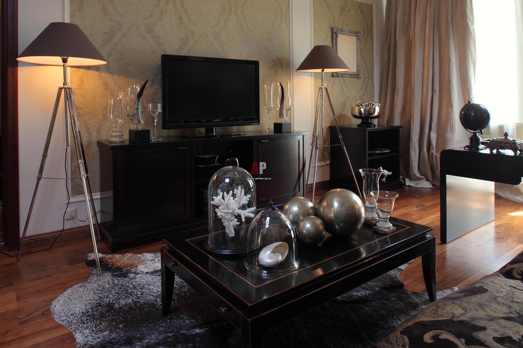 Для этого проекта дизайнеры полностью подобрали декоративное наполнение интерьера: живопись, аксессуары, посуду, столовые приборы и прочие детали.