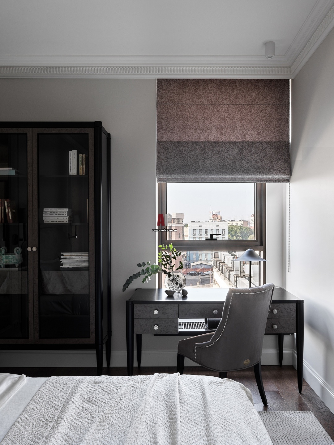 Монохромный интерьер семейной квартиры в стиле современная классика