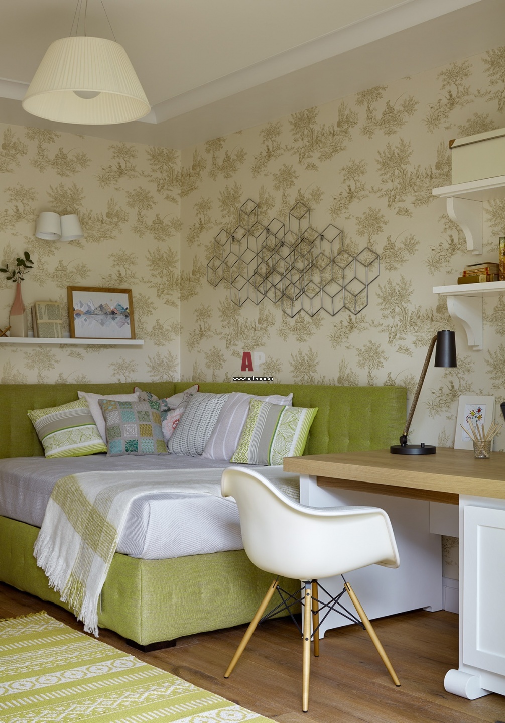 Интерьер одной из четырех детских спален. В каждой из них есть зона сна и рабочее место.