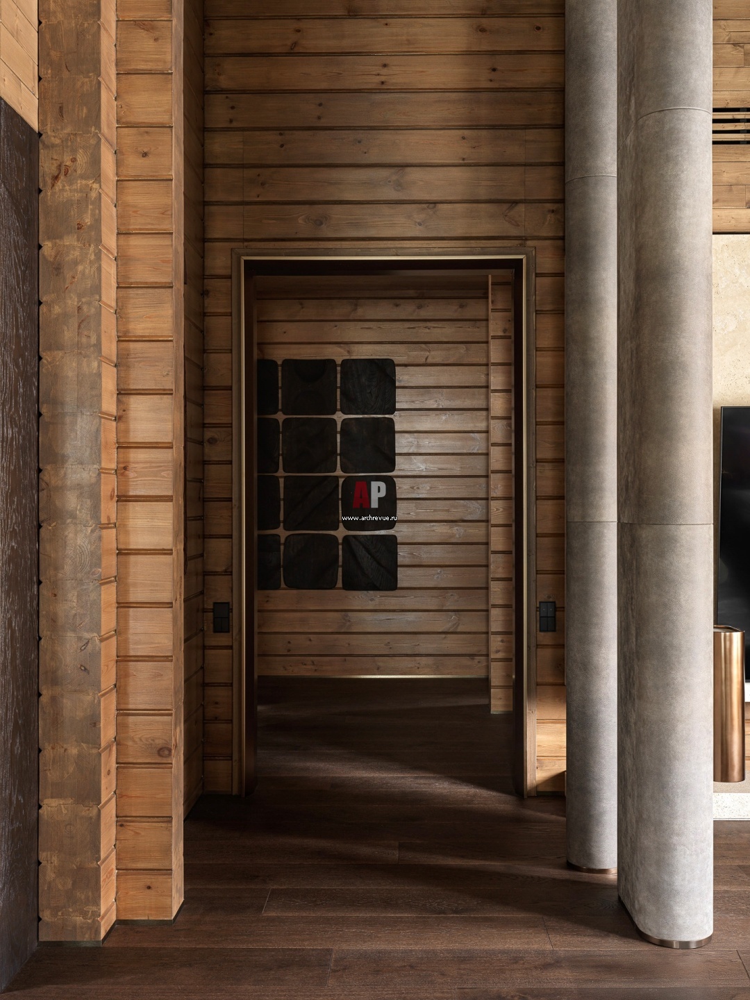 Украшение холла – уникальное деревянное панно, состоящее из 16 сегментов. На проработку каждой детали, подбор нужной фактуры и согласования по обработке ушло около полугода.