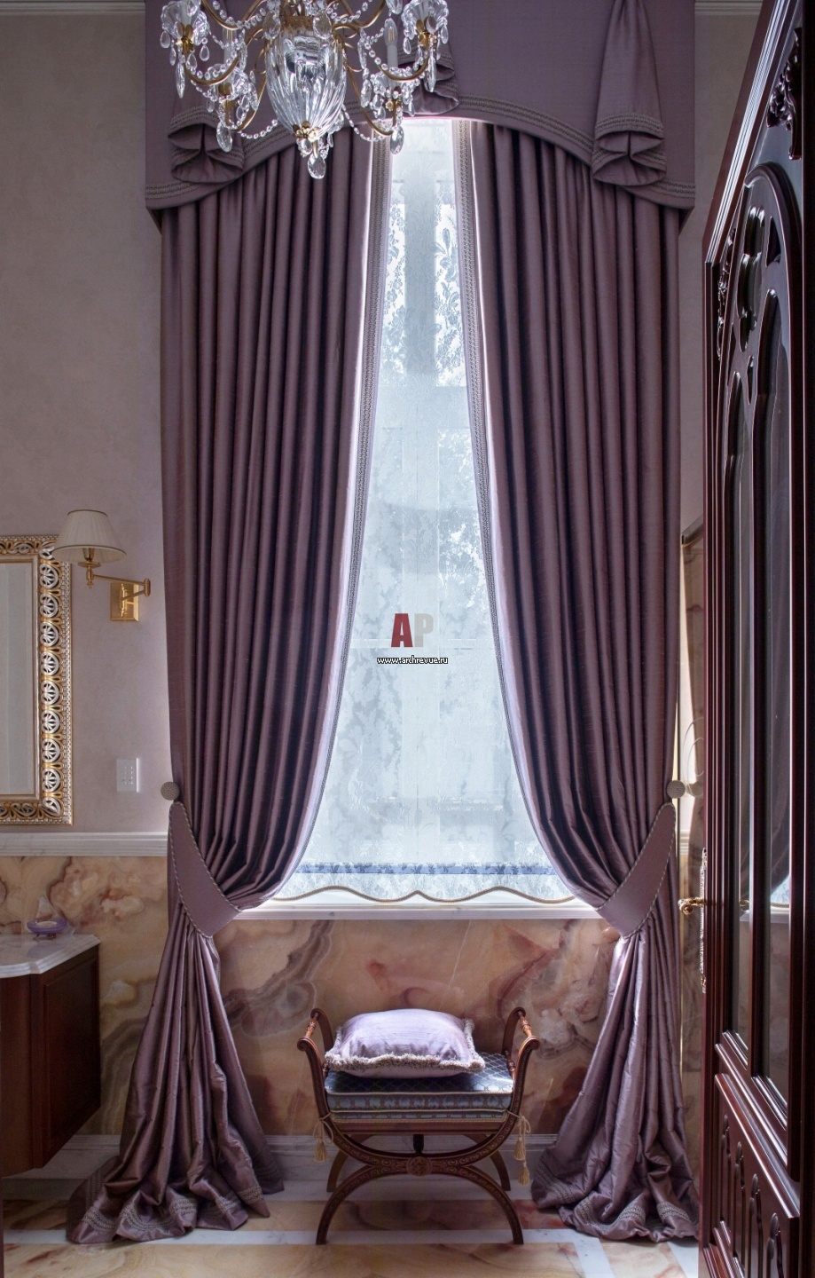 Санузел при сиреневой спальне. Стены облицована ониксом.