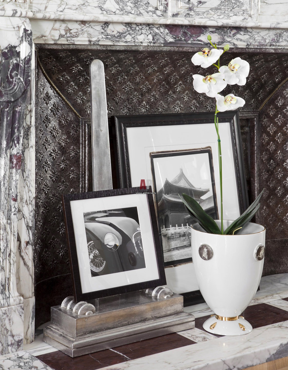 Камин с порталом из серого мрамора и ажурной металлической решеткой, Франция, XIX век.