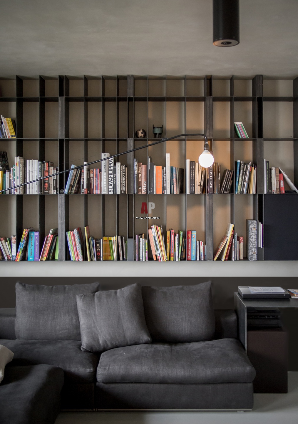Фото интерьера гостиной библиотеки квартиры в стиле минимализм