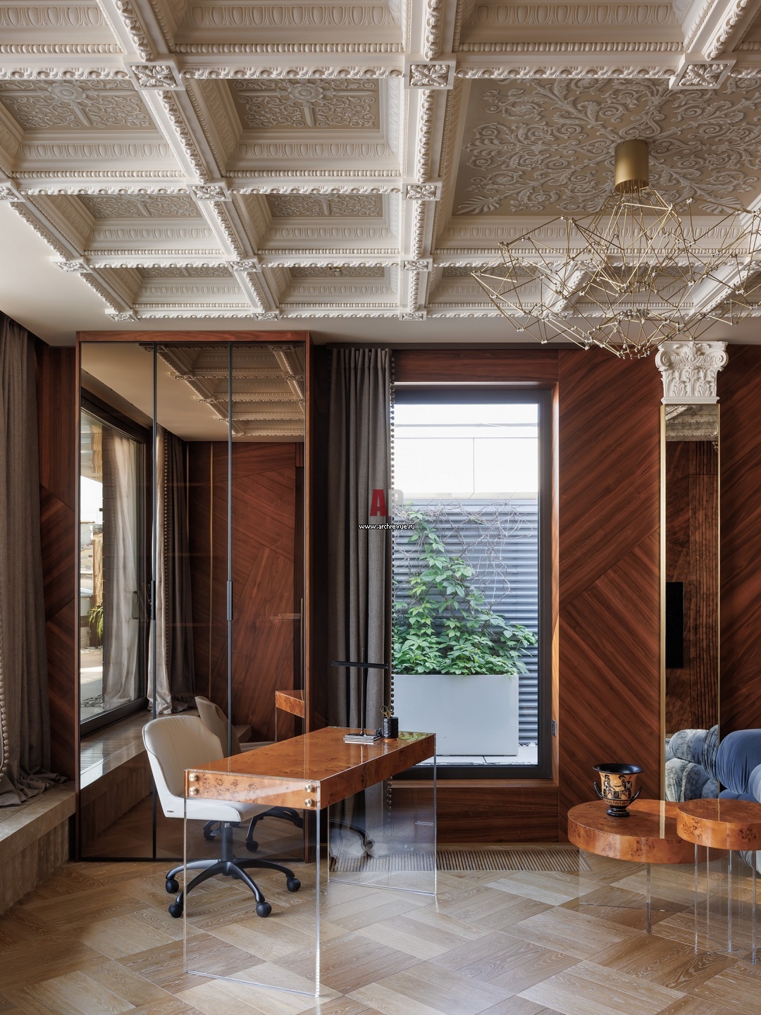 Кабинет. Кессонированный потолок выполнен в духе лучших классических образцов и украшен альфрейной живописью.