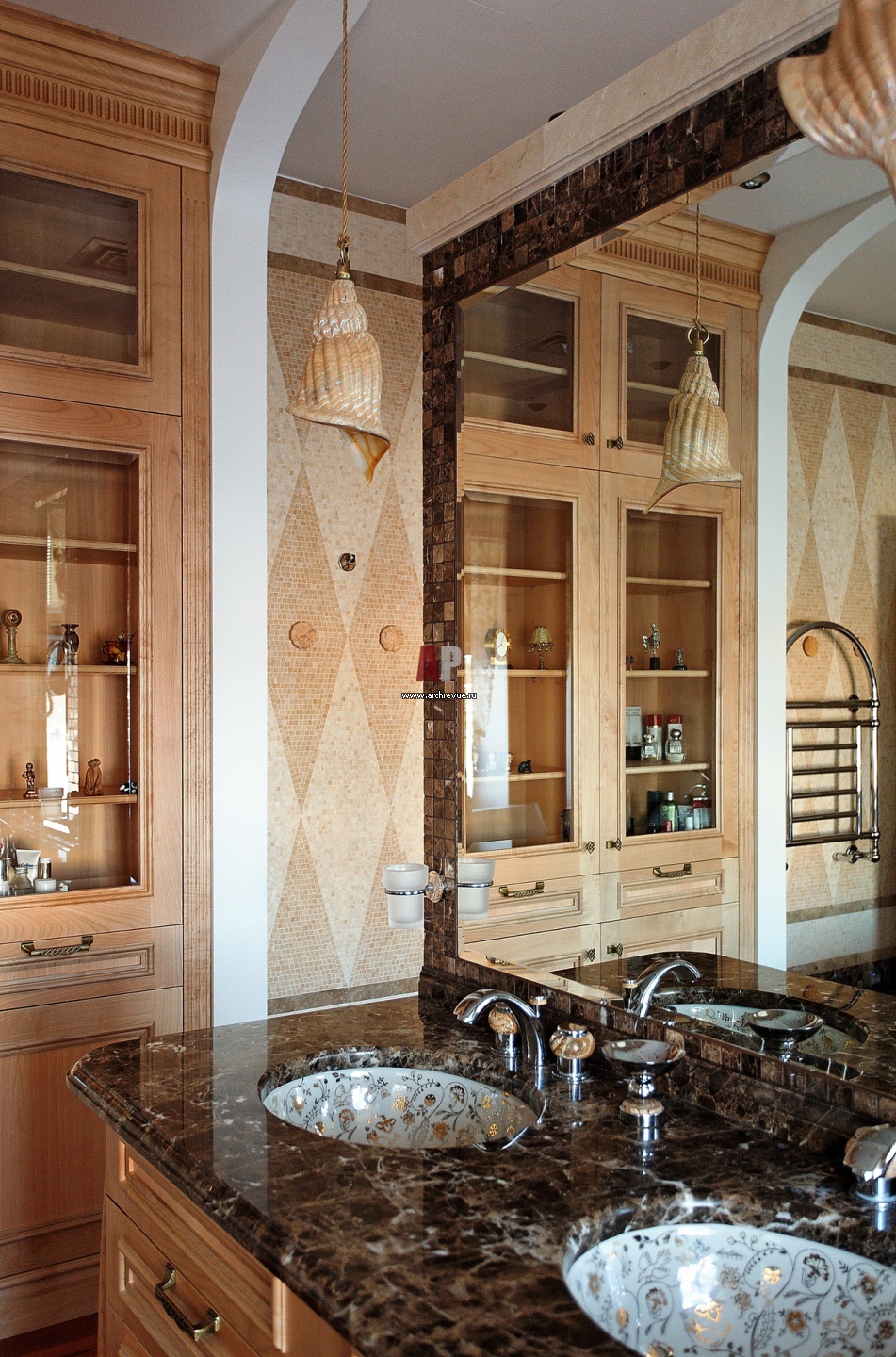 Фото интерьера санузла трехэтажного дома в стиле неоклассика