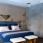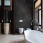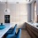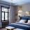 Напротив кровати – консоль с латунными ручками, изготовленная на заказ по эскизам авторов проекта. За ней – панно из корня ореха. Скульптура работы Ирины Россоловской.