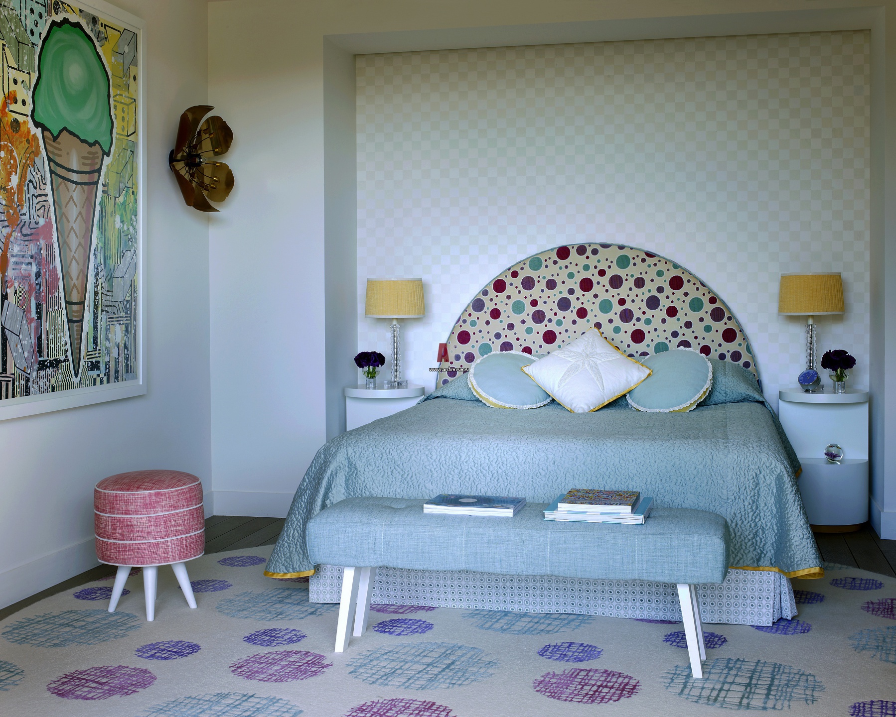Фото интерьера детской комнаты в разбеленных оттенках синего и сиреневого.