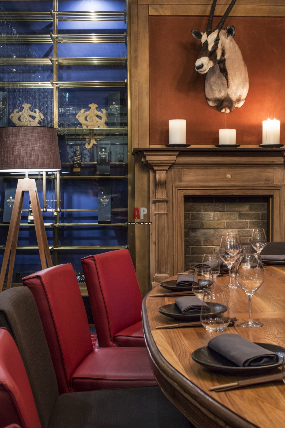 Фальш-камин из дерева создает в камерном помещении банкетного зала уютную обстановку.