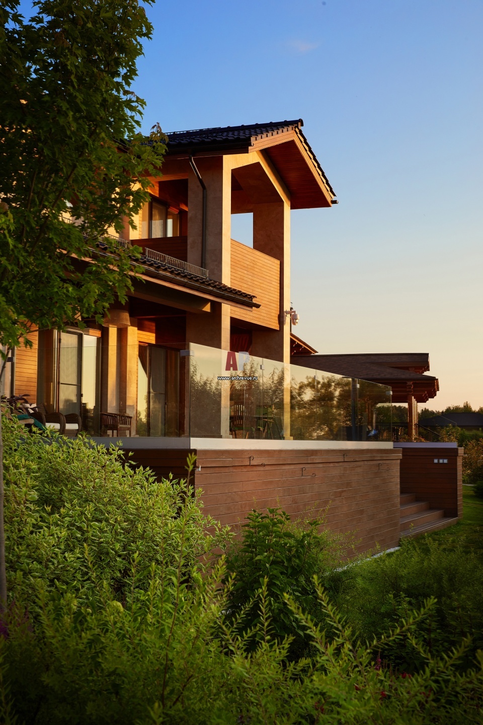 Дом на Волге с природными мотивами. Балкон с лучшим видом на реку расположен в хозяйской спальне на втором этаже.