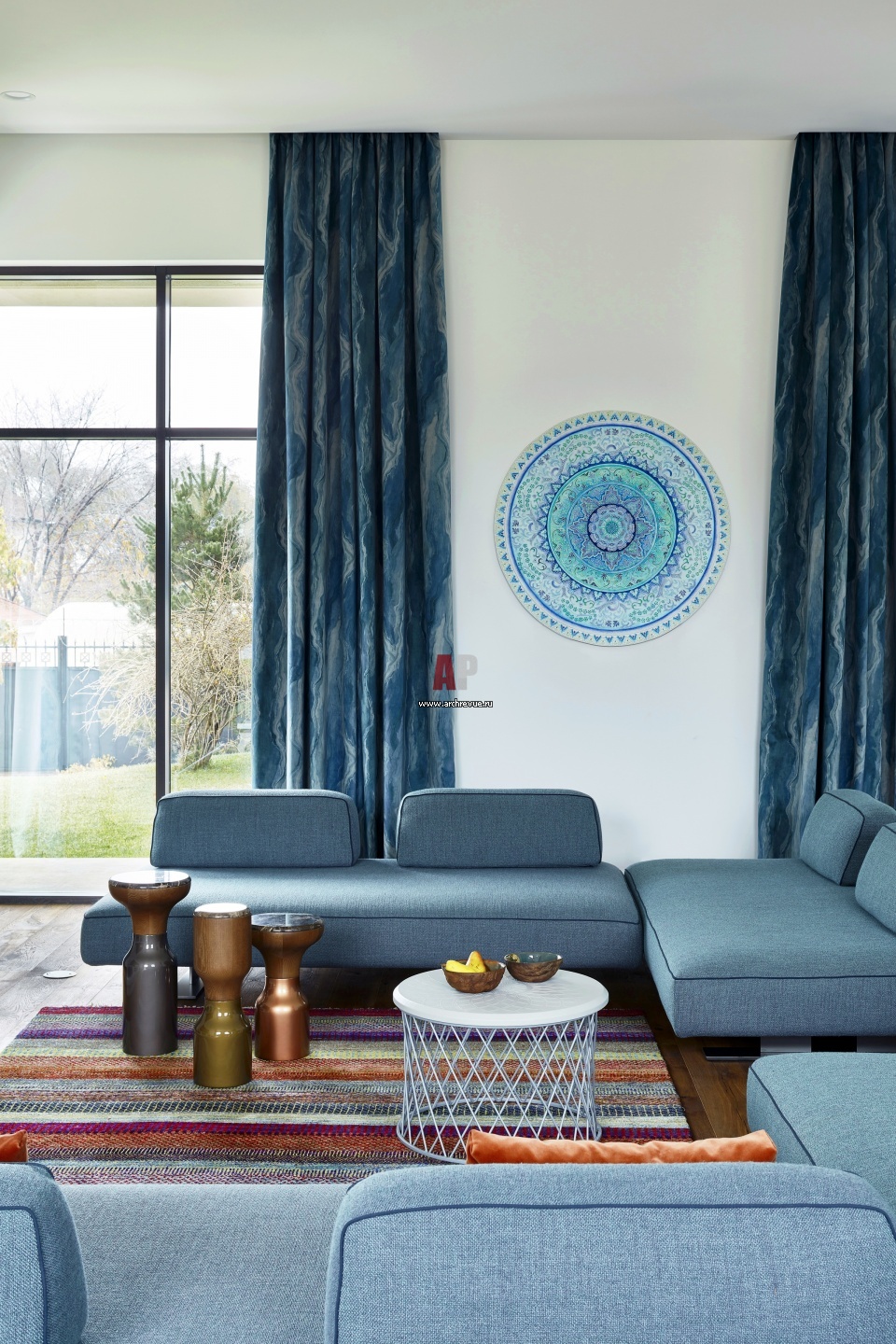 Дом с восточными мотивами для большой семьи. Выполненное из гипса и украшенное росписью панно-мандала – семейная реликвия.
