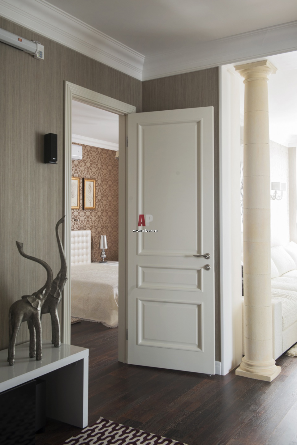 Вход в спальню со своей ванной комнатой. Центр угловой квартиры – холл, из которого можно попасть во все стальные помещения квартиры. Лепной декор, поставщик NMC.