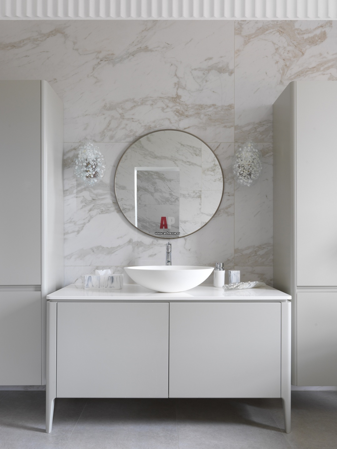 Дом с атмосферой тишины. Интерьер санузла в светло-серой палитре.