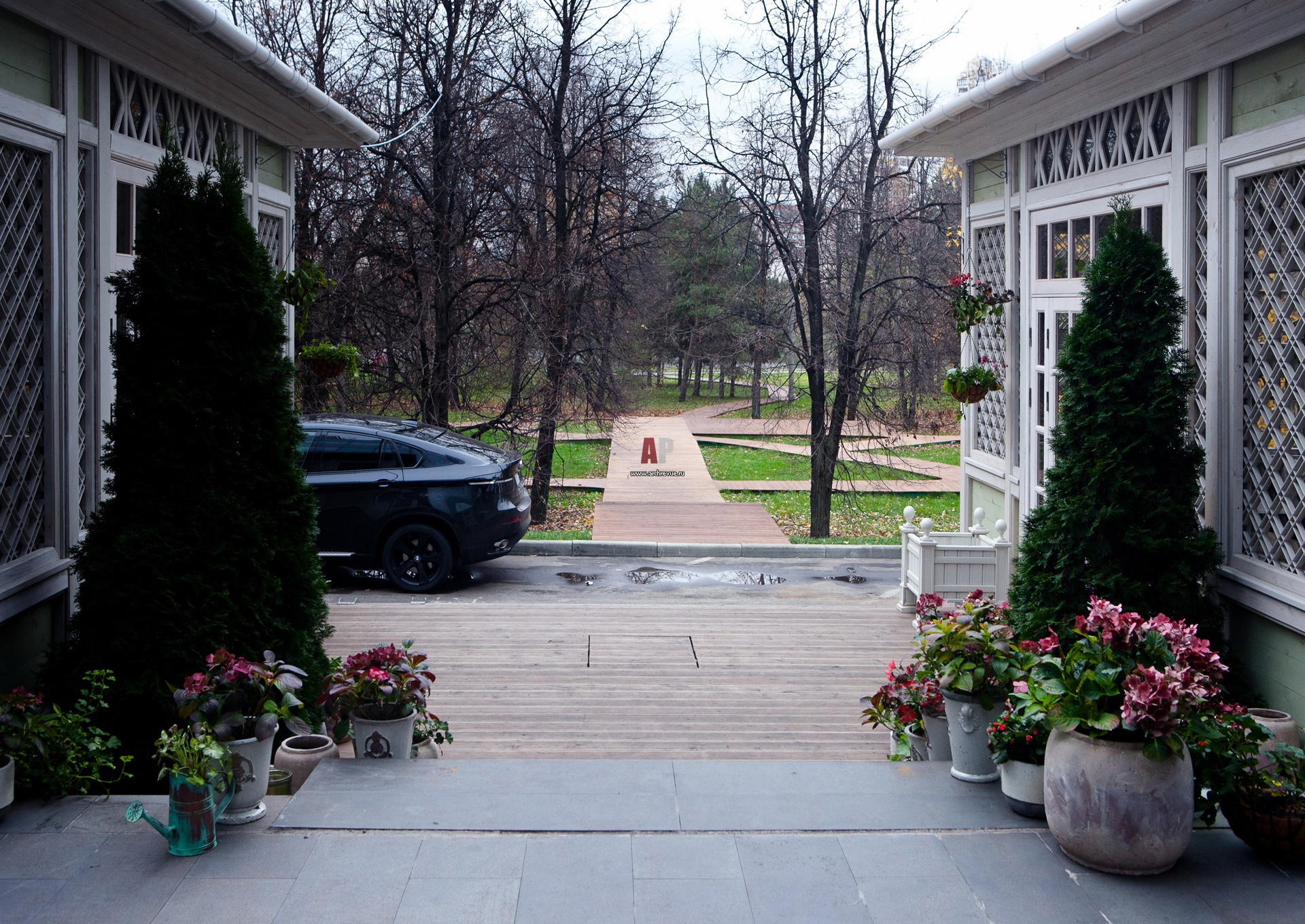 Ресторан расположен в парковой зоне с озером. Роскошные пейзажи отлично просматриваются как из окон самого ресторана, так и примыкающей к нему веранды.