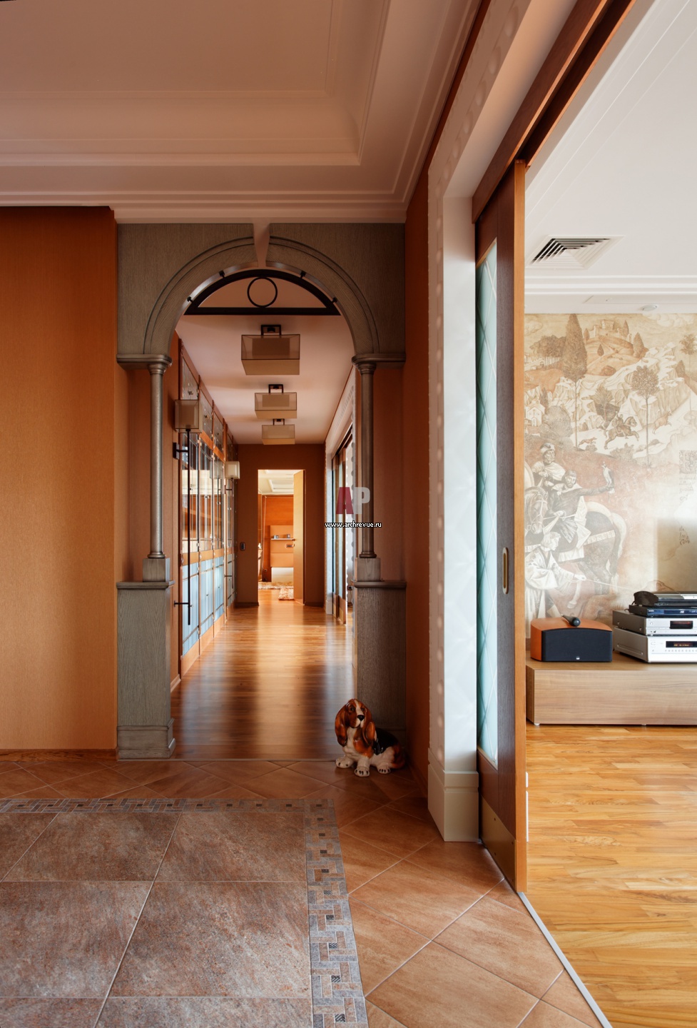 Классическую ноту в интерьер вносит декоративная арка в коридоре.