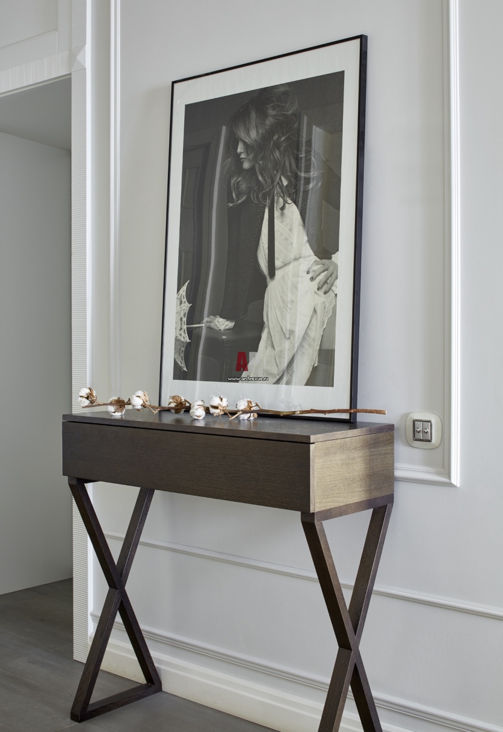 Консоль в прихожей из двух видов дерева сделана на заказ по эскизам дизайнеров, изготовление «Ассоциация русских мастеров».