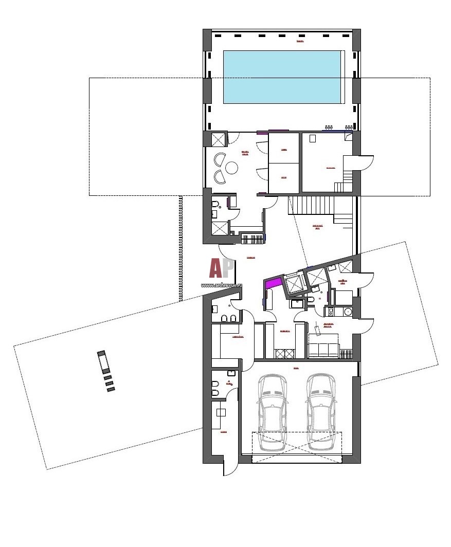 План первого этажа современного двухэтажного дома в Серебряном Бору. Общая площадь – 650 кв. м.