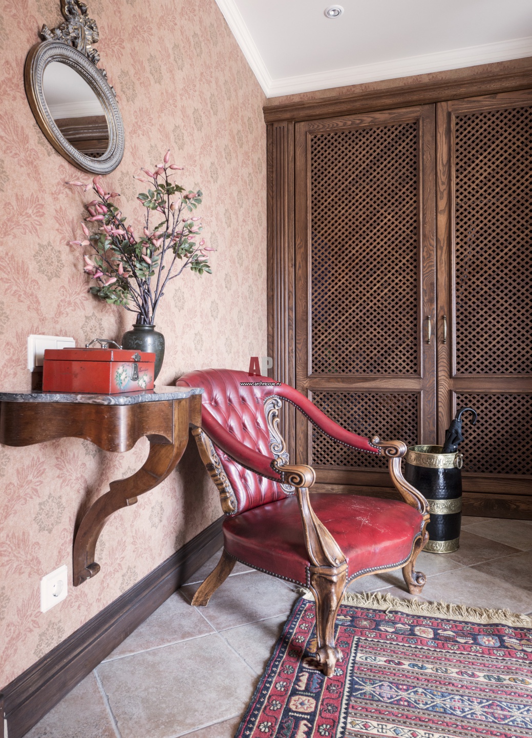 В интерьере холлов читаются колониальные мотивы. На полу – розоватый керамогранит, имитирующий состаренный камень.