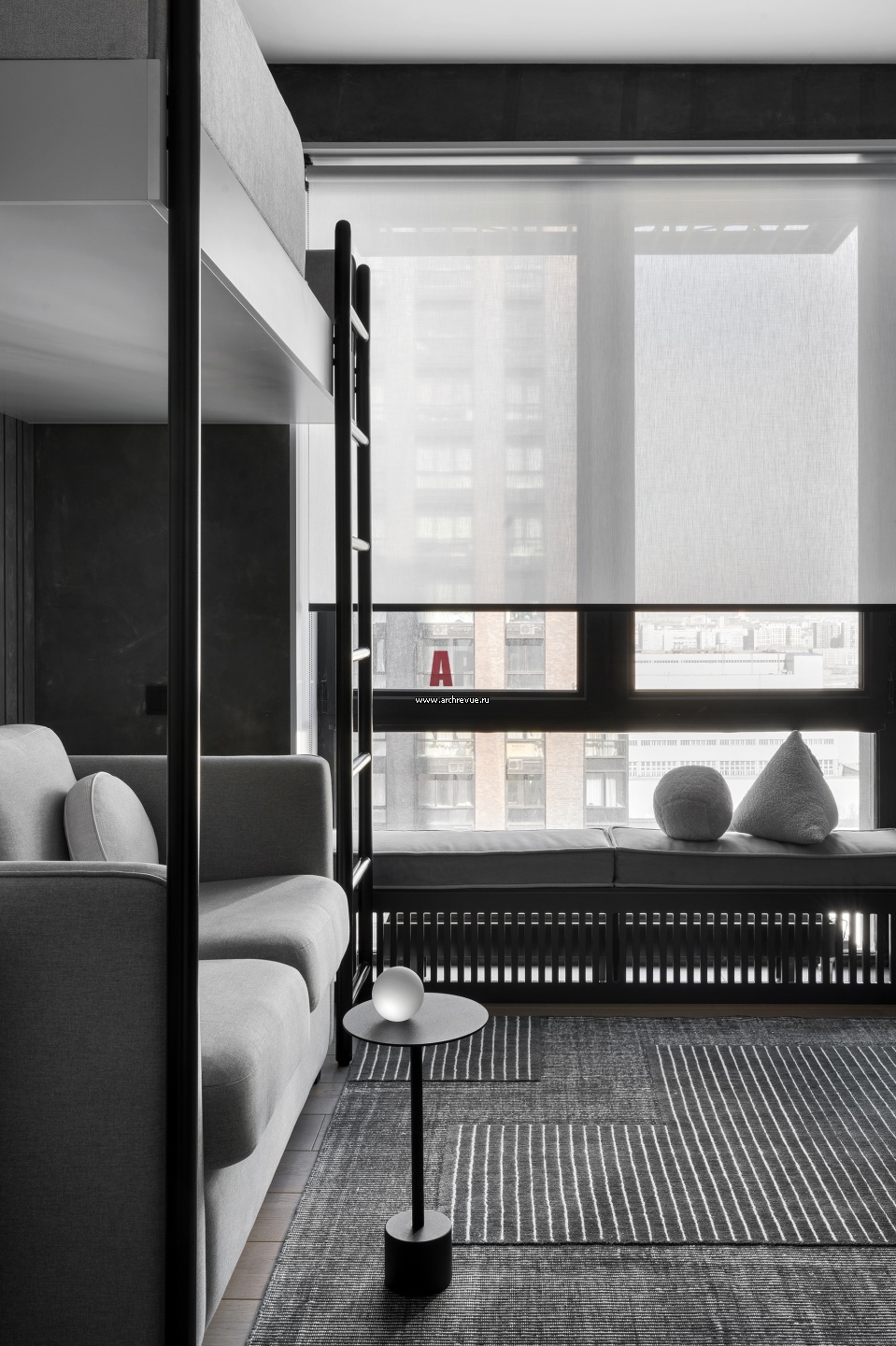 Площадь детской всего 10 кв. м. На ней нужно было разместить два спальных мета, рабочую зону, мягкую группу и шкаф, и при этом сохранить в помещении объем и воздух.