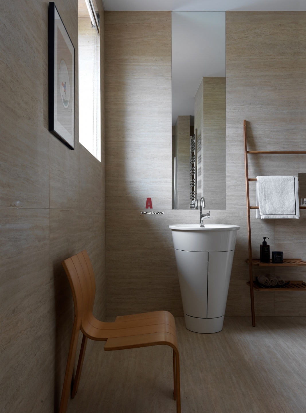 Интерьер санузла. Раковина, Duravit, дизайн Philippe Starck. Винтажный стул, Castelijn, дизайн Gjis Bakker, 1970 г.