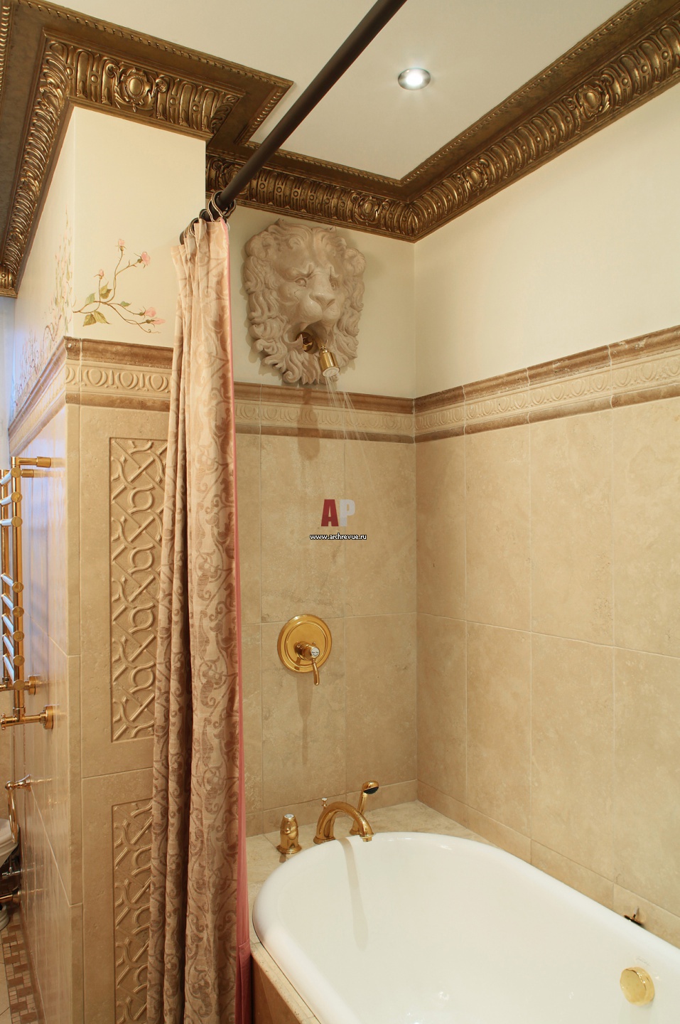 Душ в хозяйском санузле вмонтирован в пасть льва.