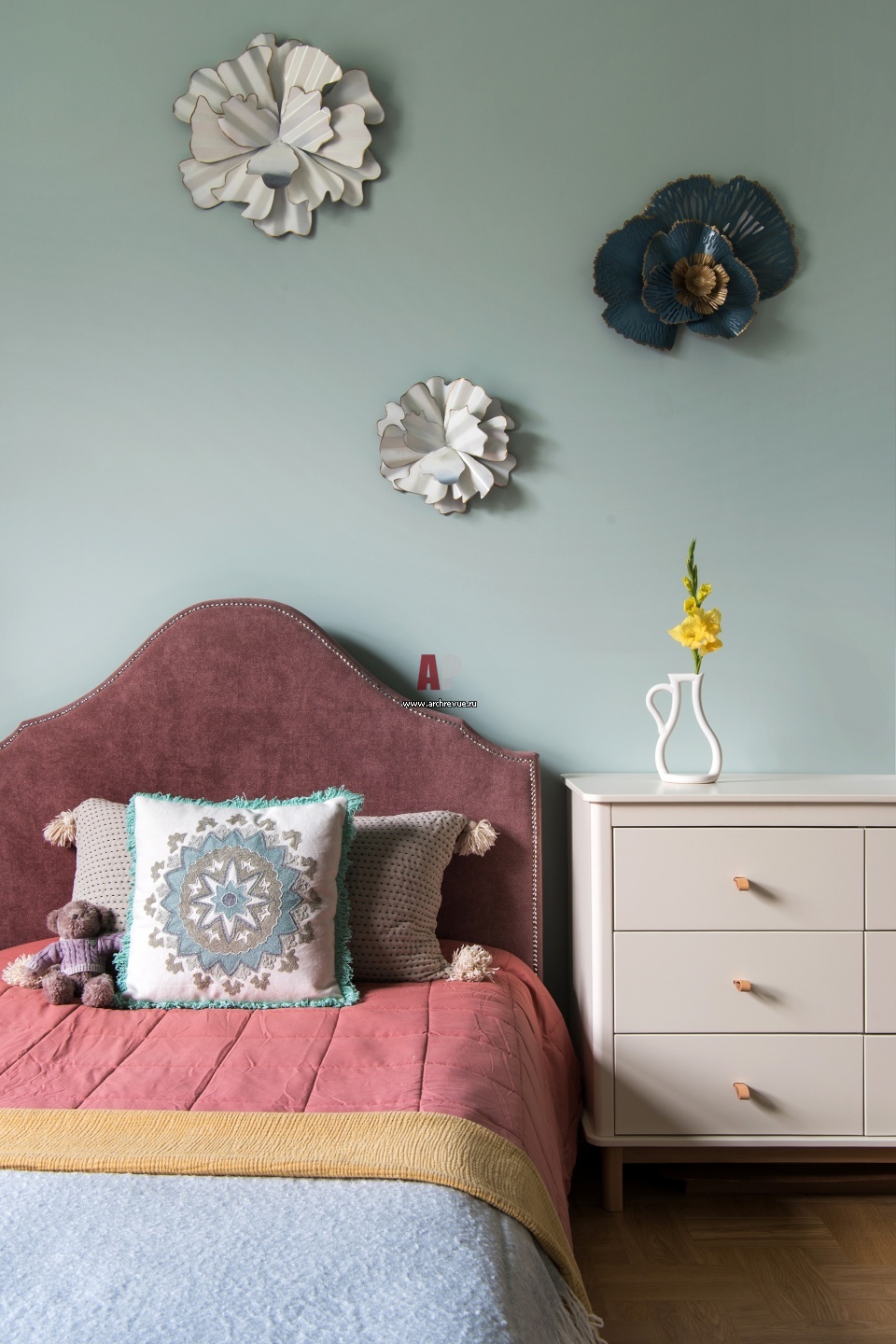 Яркая и экстравагантная квартира с элементами ретро на Мясницкой. Интерьер детской спальни в зеленых оттенках.