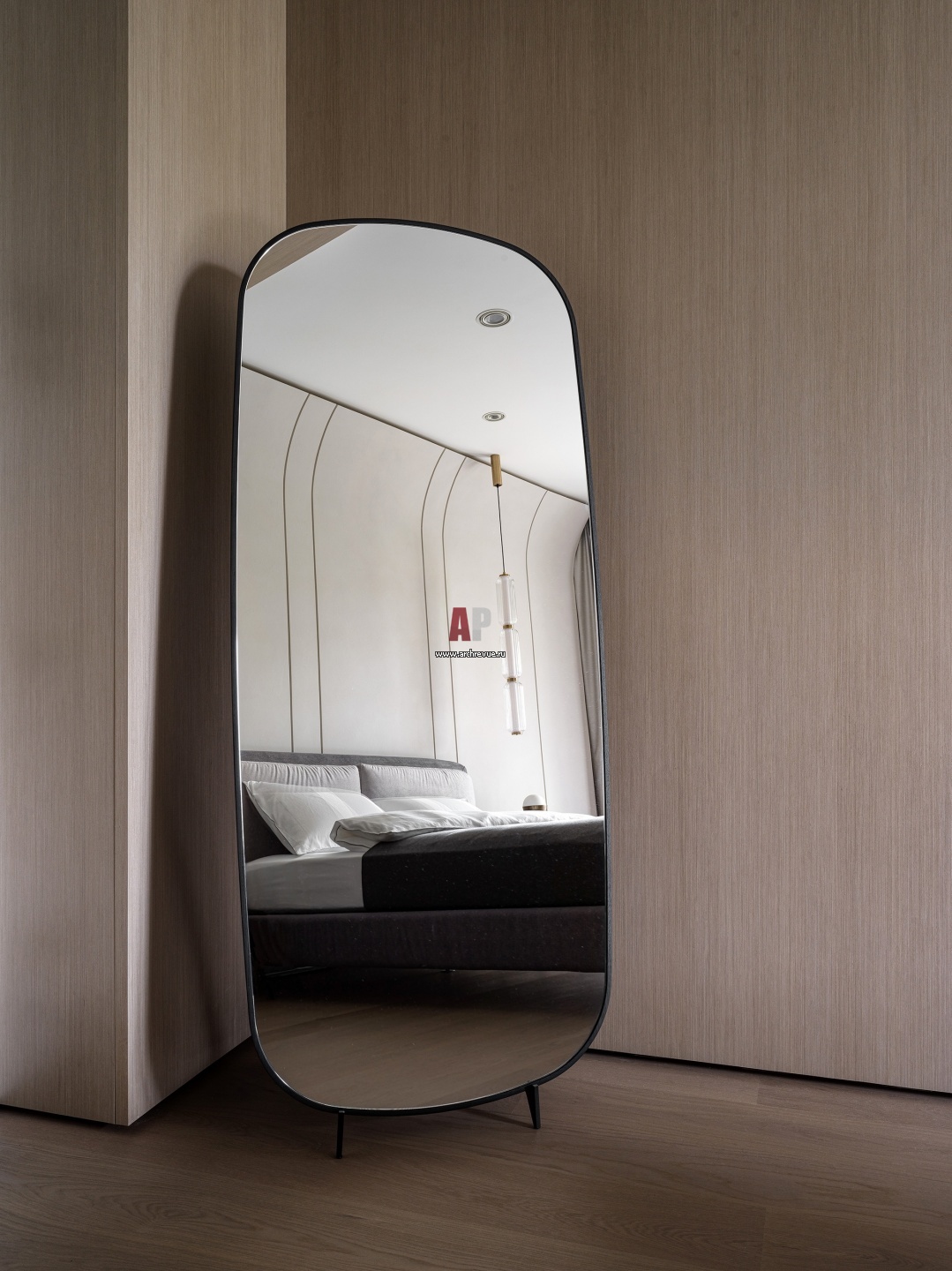 Видовая квартира в клубном жилом доме малой этажности. Гостевая. Зеркало напольное, шкаф Poliform.
