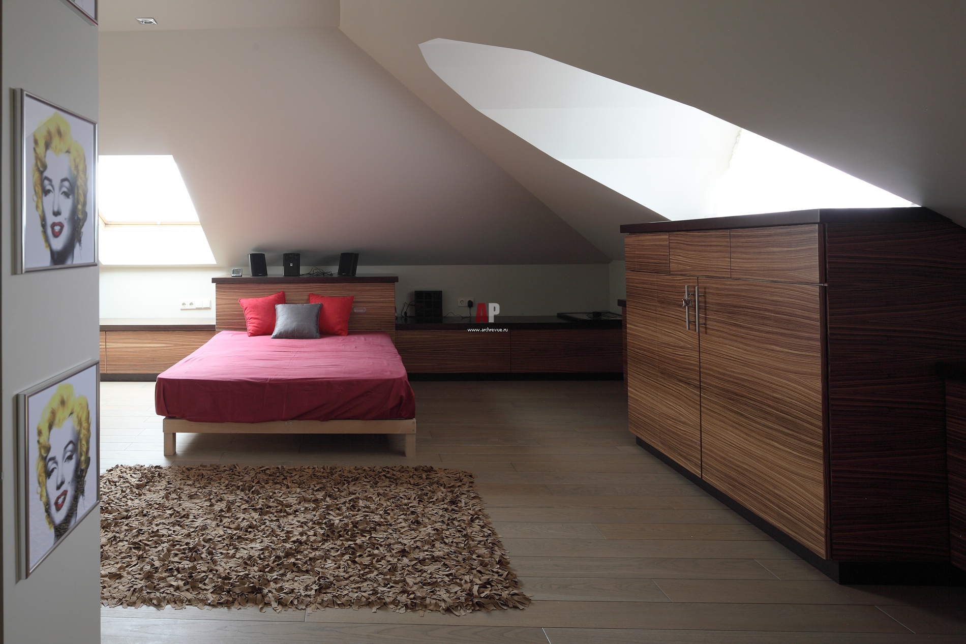 Детская комната для мальчика в современном стиле. Мебель сделана на заказ их шпона зебрано, изготовление TermitStudio. На полах – доска из выбеленного дуба, поставщик «Мир Паркета».