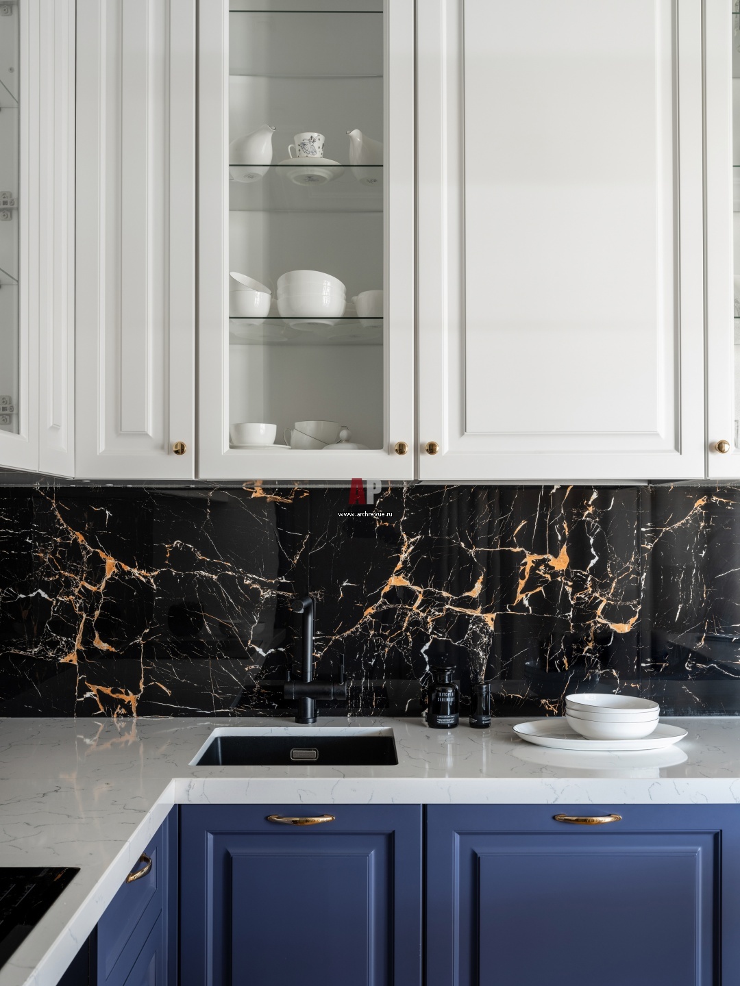 Комфортный дом для семейной жизни в Подмосковье. Интерьер кухни. Кухонная мойка, Omoikiri.