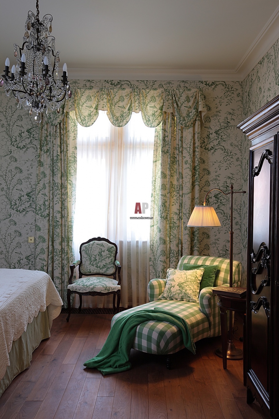 На полу жилых помещений – массивная дубовая доска, характерная для традиционного английского интерьера.
