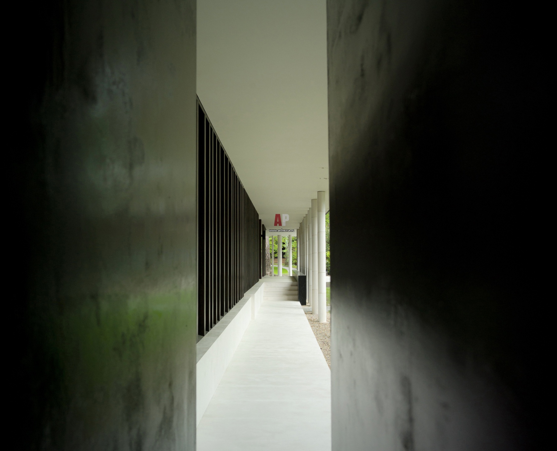 Галерея на боковом фасаде. В отделке использованы лиственница, доломит, шунгит.