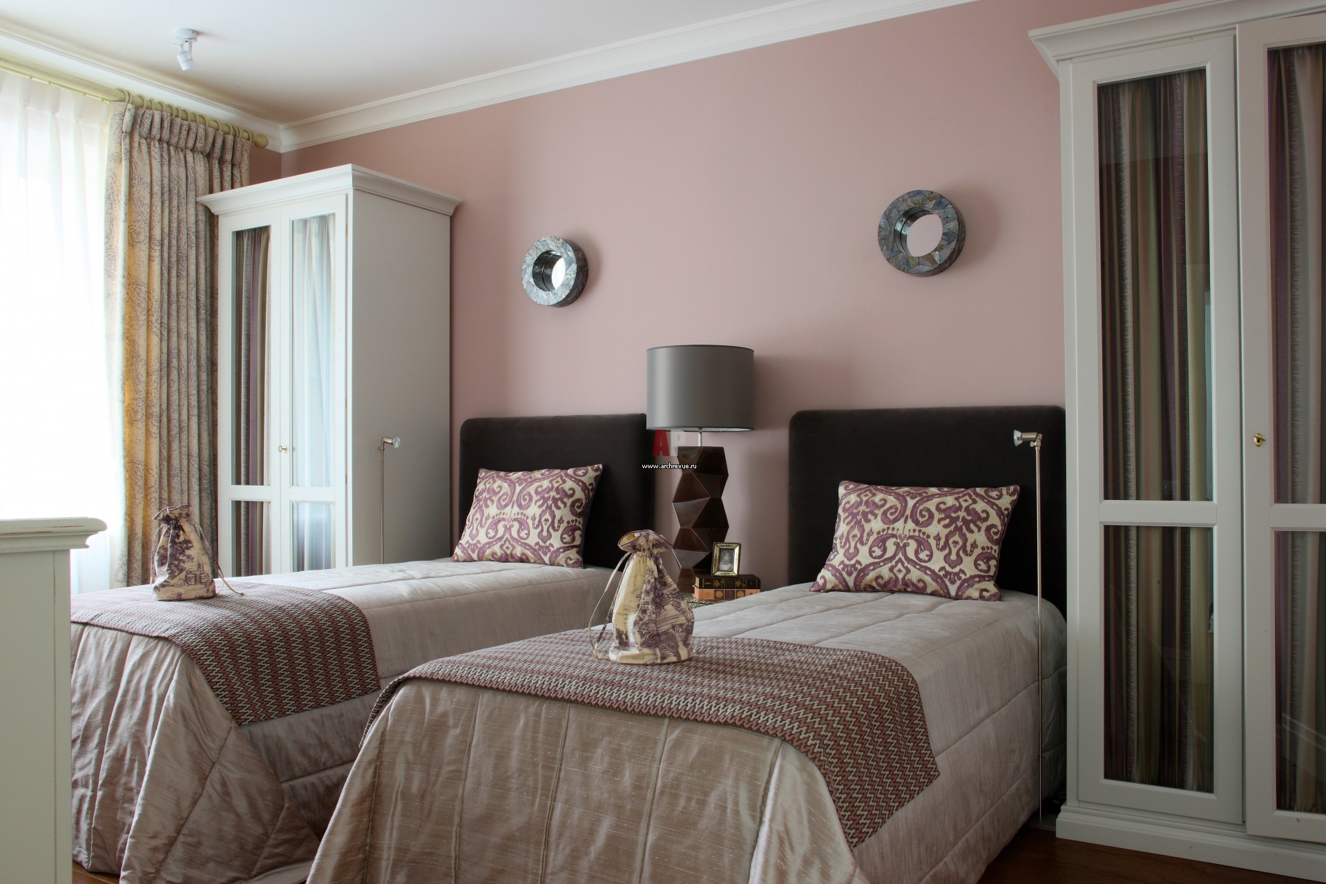 Гостевая спальня, она же спальня внуков. Кровати, шкафы с прозрачными створками и комод, по эскизам, «Мебельная линия Ирина Бубнова».