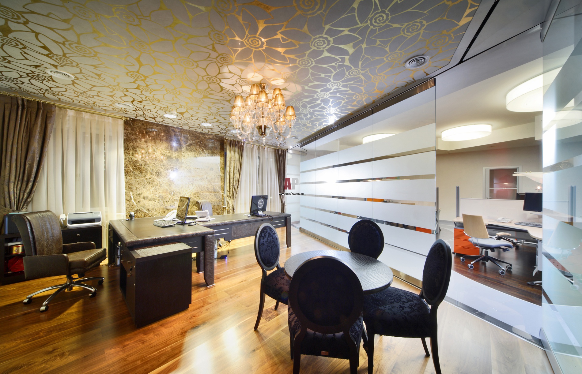 Фото интерьера кабинета руководителя офиса в стиле гламур