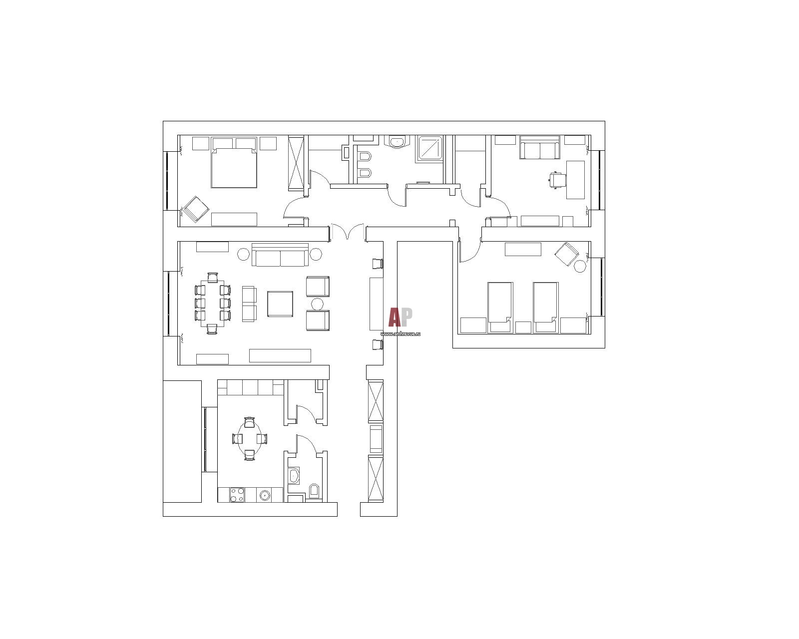 Планировка 4-х комнатной квартиры для старшего поколения семьи. Общая площадь – 140 кв. м.