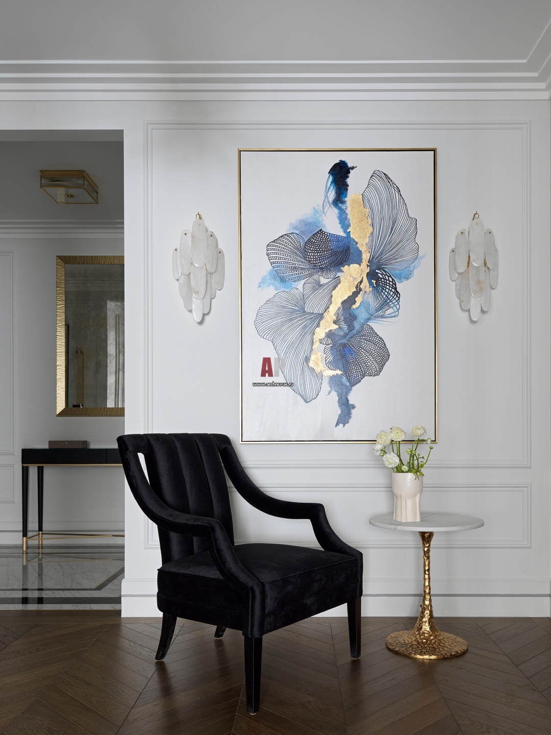 Светлые стены – отличный фон для картин и произведений современного искусства.