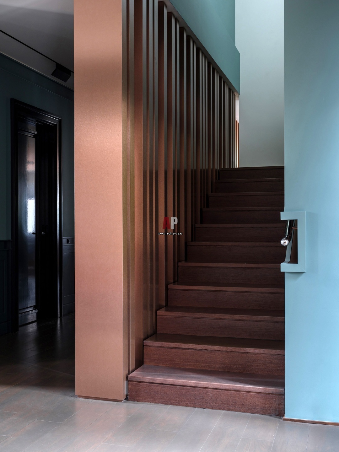 Каждая деталь в доме продумана и эргономична. Например, перила лестницы встроены в ниши–прорези, а ограждение выстроено на большую высоту, что удобно и безопасно для детей.