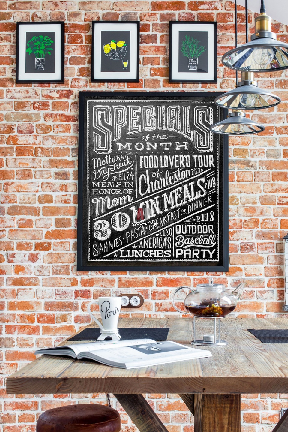 Интерьер лофта оформлен аскетичными накладными светильниками и прожекторами Nud Collection. Кухонный стол акцентирован строгими шведскими лампами на длинных шнурах.